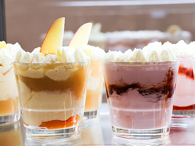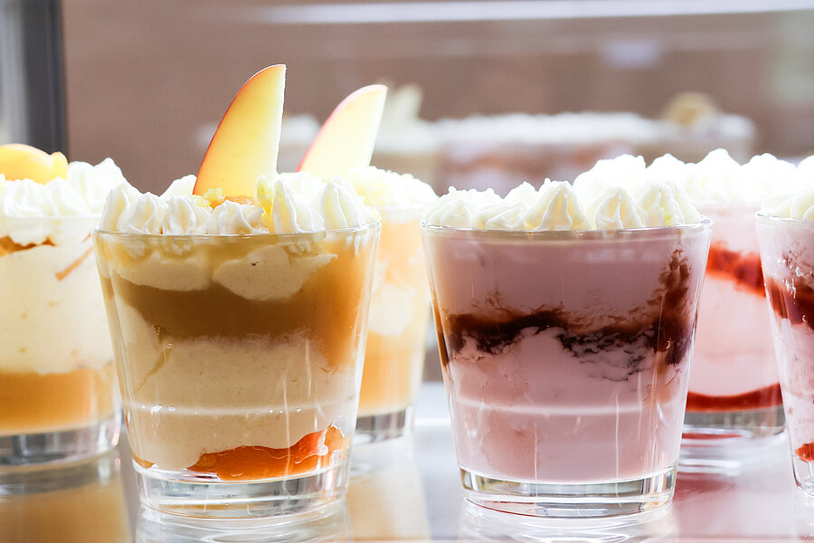Unsere Cafeterias bieten auch eine große Auswahl an veganen Produkten, wie Hafermilch für Kaffee und Neapolitanische Waffeln.