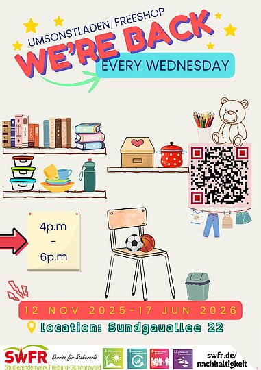 Schreibe an nachhaltigkeit@swfr.de oder frage direkt unsere Tutorin im Umsonstladen vor Ort.